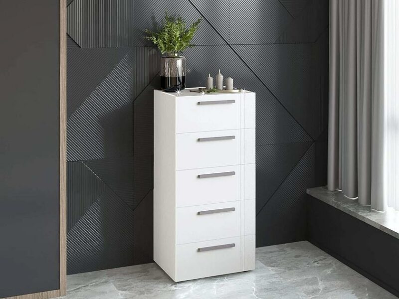 Комод «Николь 901.19» является частью модульной программы «Николь». Сочетание белоснежных матовых фасадов с нежно-серым мерцающим декором «мрамор» — визитная карточка этой коллекции. Конструктив и дизайн модели продуман до мелочей.