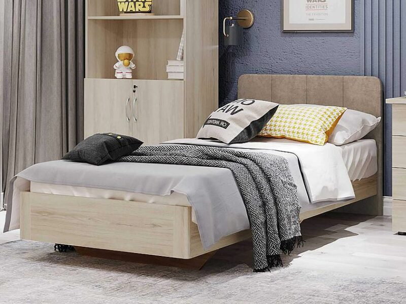Спинка кровати выполнена из прочной и износостойкой ткани, приятной на ощупь.