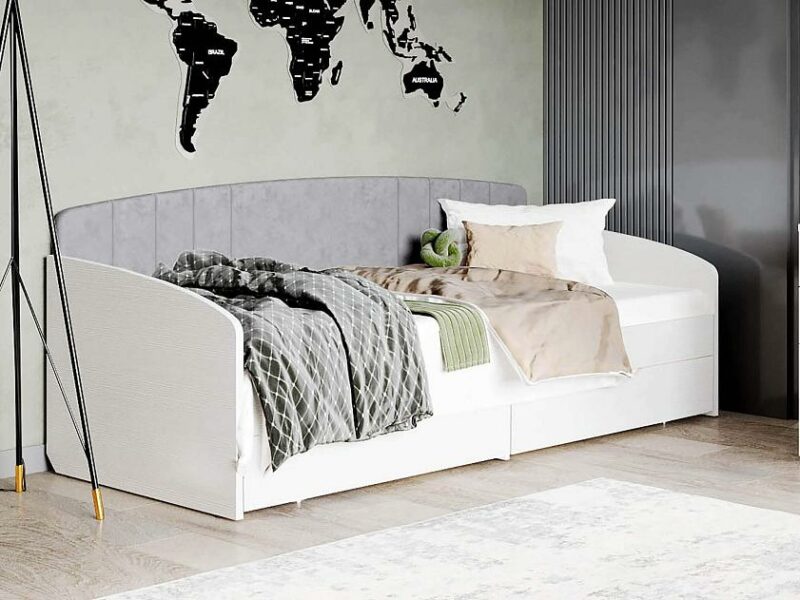 Кровать «Николь 901.05» является частью модульной программы «Николь». Стильная и практичная модель, выполненная в трендовом сочетании матового белого и глубокого нежно-серого цвета, прекрасно впишется в интерьер детской спальни. Изголовье кровати выполнено из мягкого и прочного софт-велюра. Кровать можно использовать не только в сочетании с другими модулями спальни, но и как отдельный предмет мебели.