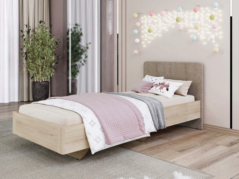 Спинка кровати выполнена из прочной и износостойкой ткани, приятной на ощупь.