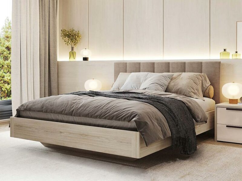 Современный стиль изделия подчеркивается модным конструктивным решением: эффектом «парящей» кровати.