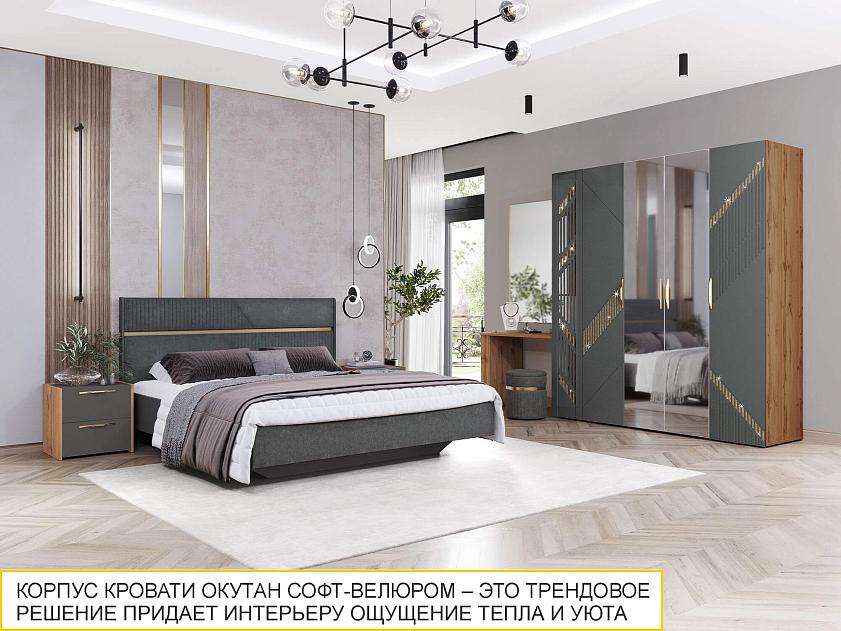 Актуальный цвет обивки кровати «Десерт серый» прекрасно сочетается с модулями коллекции, а также с предметами интерьера любой другой цветовой гаммы.