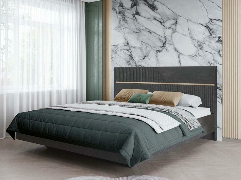 Спинка и корпус кровати обтянуты прочной и износостойкой тканью, приятной на ощупь. Такое дизайнерское решение привлекает внимание и придает интерьеру Вашей спальни ощущение тепла и уюта.