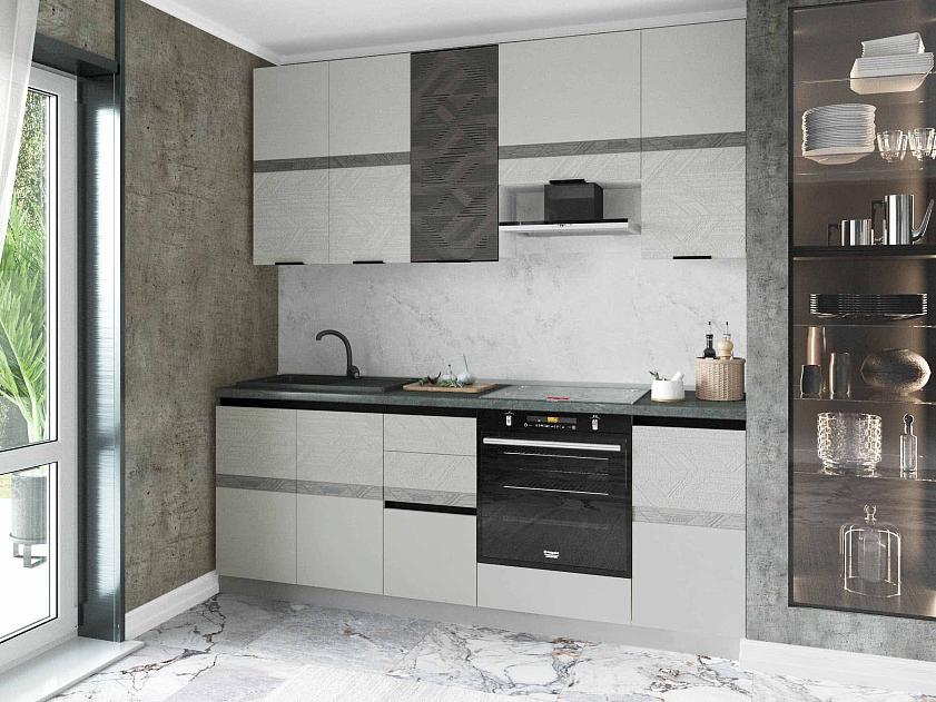 Объемное дизайнерское тиснение на фасадах подчеркивает современный стиль кухни.