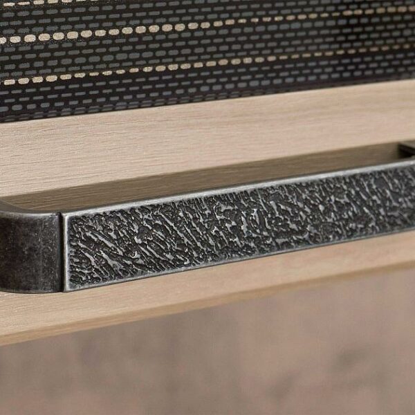 Привычная строгая геометрия кухонного фасада дополнена нежным 3D-декором в серебре.