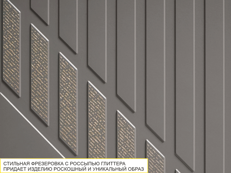 Эффектная фрезеровка с объемным 3D-рисунком и россыпью глиттера подчеркивает