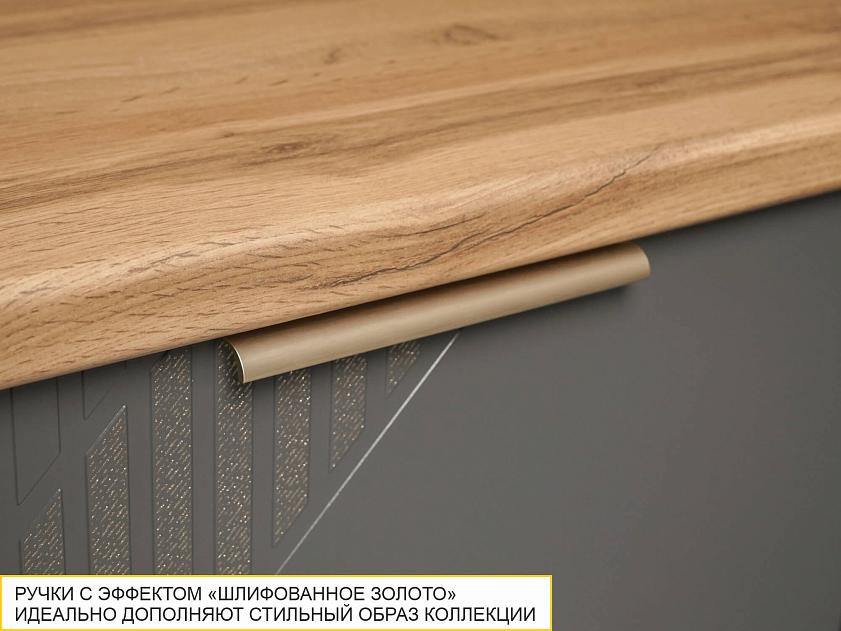 Нижние фасады выполнены в насыщенном цвете «Графит», который добавляет кухне глубины и контраста, подчеркивая элегантность дизайна.