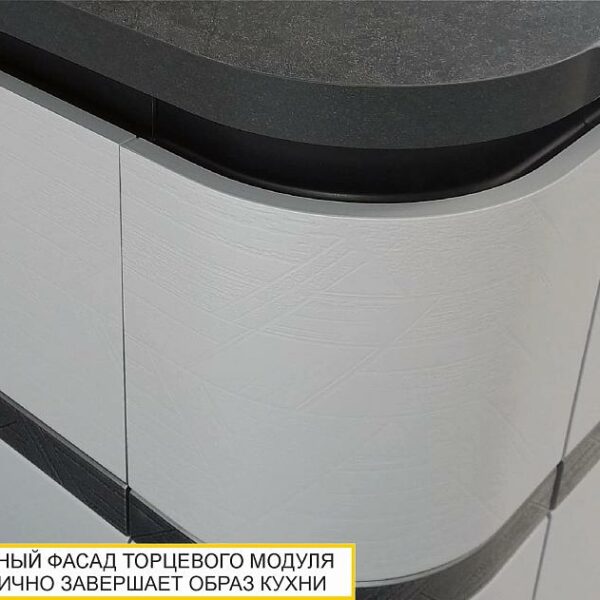 С такой мебелью интерьер кухни становится уютным, домашним и современным. Ширина напольных шкафов – 2300х3000×2320 мм. Ширина навесных шкафов с учетом навеса – 2330х3010 мм.