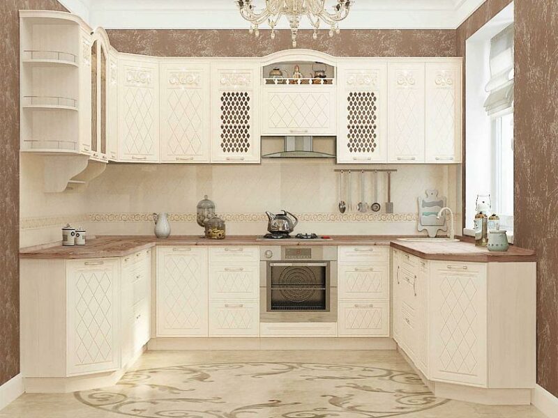 Кухонный гарнитур П-образный с витриной Тиффани 29