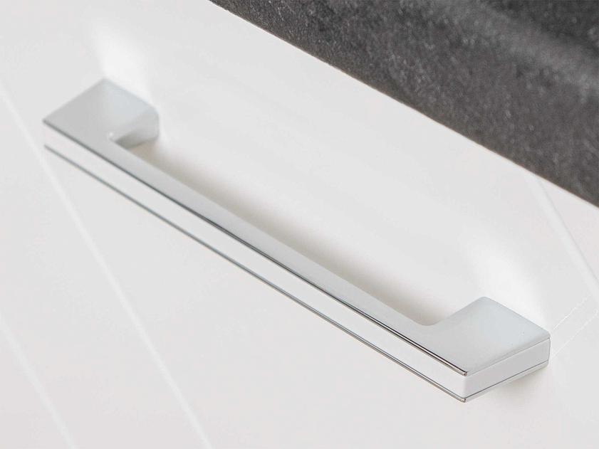 Привычная строгая геометрия кухонного фасада дополнена нежным 3D-декором в серебре.