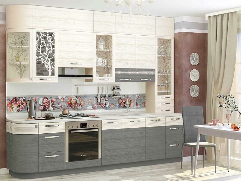 «Графит» – кухня для тех, кто стремится быть в тренде и идти в ногу со временем! Ширина напольных шкафов с учетом рекомендуемого свеса столешницы – 2930 мм. Ширина навесных шкафов с учетом торцевого шкафа – 2920 мм.
