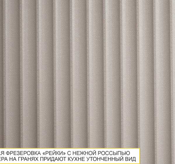 Объемное дизайнерское тиснение на фасадах подчеркивает современный стиль кухни.
