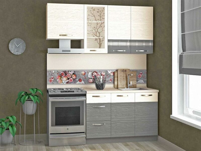 Кухонный гарнитур с витриной Графит 16