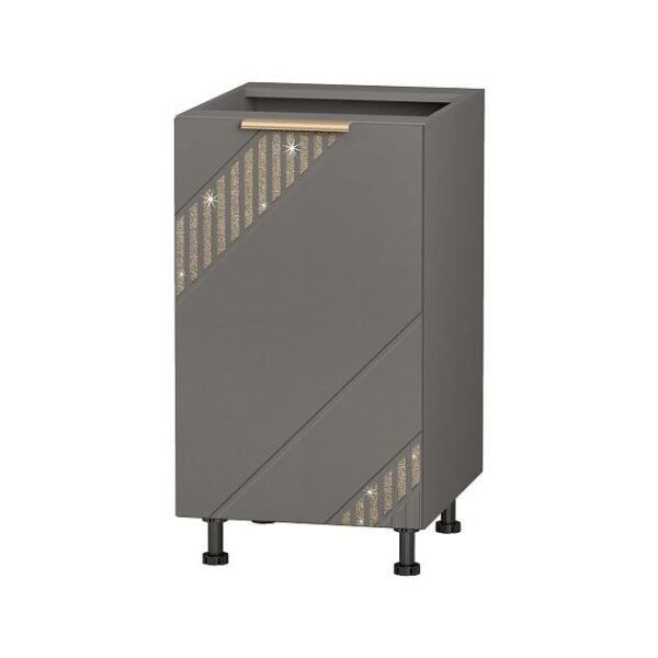 Нижние фасады выполнены в насыщенном цвете «Графит», который добавляет кухне глубины и контраста, подчеркивая элегантность дизайна.
