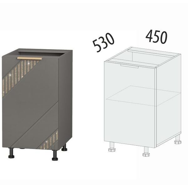 Столешница, плинтус, опора барной стойки, стеновая панель, мойка и смеситель не входят в состав набора, Вы можете их приобрести отдельно в нашем интернет-магазине.