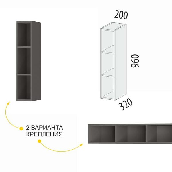 Модули произведены из ЛДСП и МДФ повышенной плотности, материал устойчив к механическим и термическим воздействиям. Класс эмиссии плиты – Е1, что говорит об экологической безопасности.