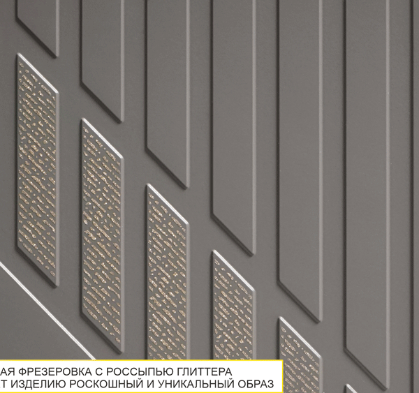 Эффектная фрезеровка с объемным 3D-рисунком и россыпью глиттера подчеркивает эксклюзивный и уникальный вид изделия.