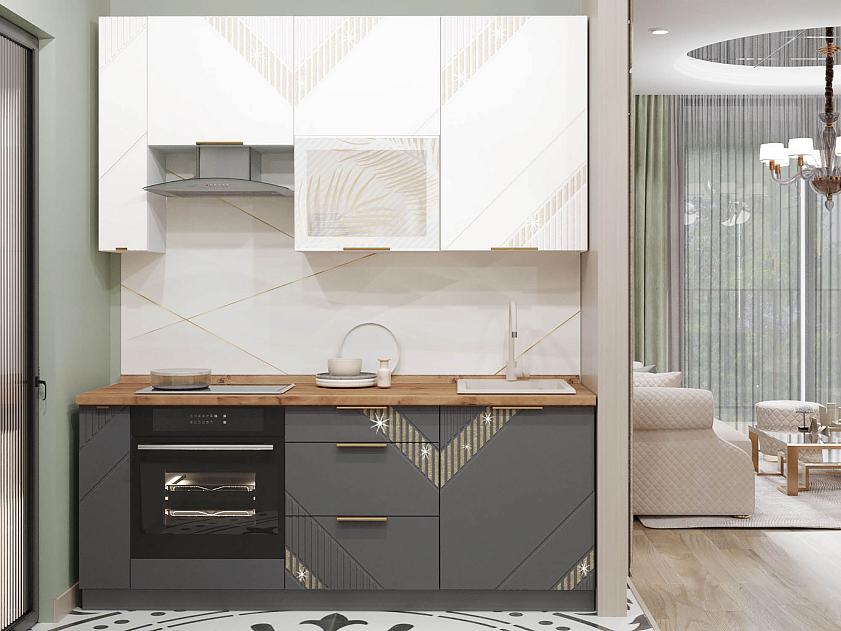 Нижние фасады выполнены в насыщенном цвете «Графит», который добавляет кухне глубины и контраста, подчеркивая элегантность дизайна.