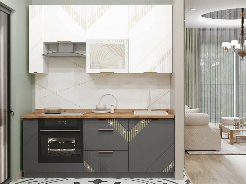 Кухня «Монако 106» — это образец элегантного стиля и утонченного вкуса. Эффектная фрезеровка с объемным 3D-рисунком и россыпью глиттера подчеркивает