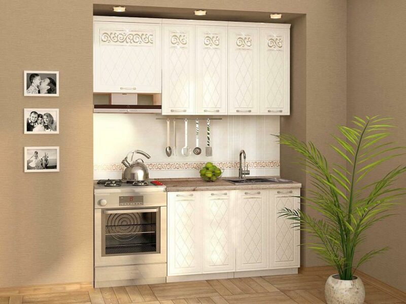 Набор мебели для кухни «Тиффани» – решение для Вашего интерьера в светлых тонах. Фасады украшены ажурной фрезеровкой, глиттерным рисунком и кристаллами премиум-класса. Европейская фурнитура обеспечивает удобную и длительную эксплуатацию. Ножки столов регулируются по высоте для удобной установки модулей и корректировки неровностей пола.
