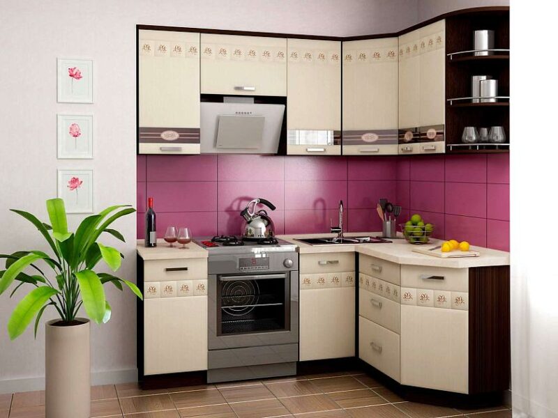 С такой мебелью интерьер кухни становится уютным, домашним и современным. Ширина напольных шкафов – 2000×1500 мм. Ширина навесных шкафов с учетом навеса – 2010×1530 мм.