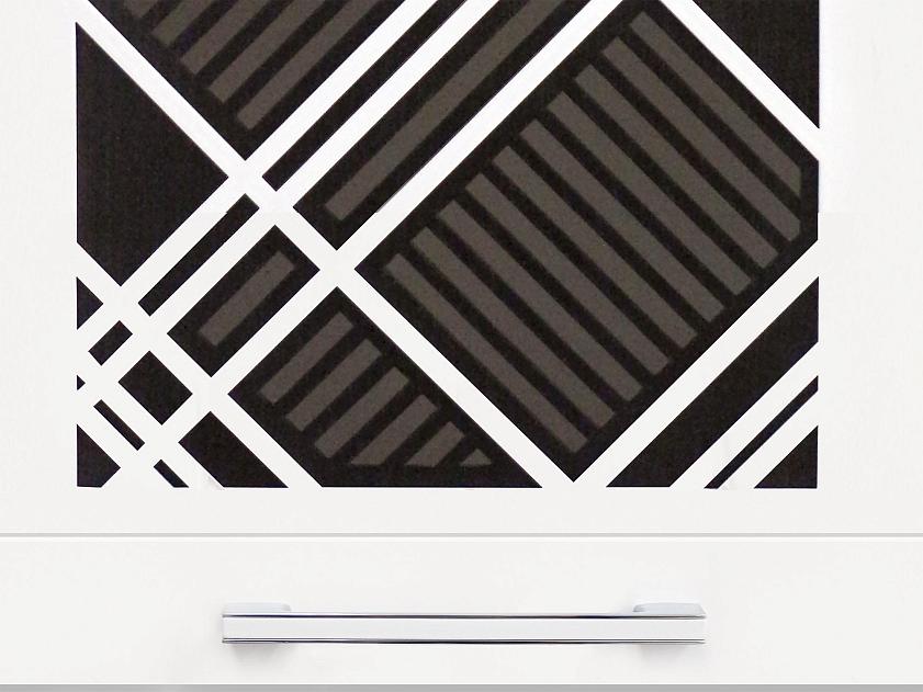 Привычная строгая геометрия кухонного фасада дополнена нежным 3D-декором в серебре.