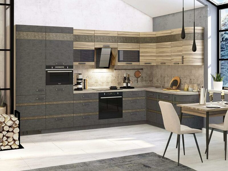 Кухня «Бруклин» – функциональная, как городская среда, и уютная, как уикенд на природе. Поможет создать комфортный заряжающий энергией интерьер в гармонии с окружающей средой. Выполнена в современном экостиле. Модное цветовое сочетание, контрастные металлические ручки, декор, точно передающий фактуру натурального дерева как на ощупь, так и визуально, придают кухне выразительность и неповторимость. Ширина напольных шкафов с учетом рекомендуемого свеса столешницы – 3600х1930 мм. Ширина навесных шкафов с учетом навеса – 3610х1930 мм.