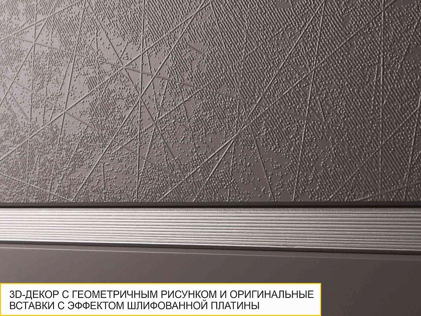 Оригинальное 3D-тиснение на фасадах, четкая линейность декоративной вставки с эффектом шлифованной платины делают дизайн необычным и привлекающим внимание.