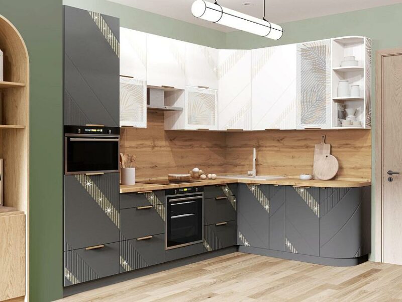 Кухня «Монако 106» — это образец элегантного стиля и утонченного вкуса. Эффектная фрезеровка с объемным 3D-рисунком и россыпью глиттера подчеркивает эксклюзивный и уникальный вид изделия. Цвет верхних фасадов «Альпийский белый» визуально увеличивает пространство, делая его более светлым и воздушным. Нижние фасады выполнены в насыщенном цвете «Графит», который добавляет кухне глубины и контраста, подчеркивая элегантность дизайна.