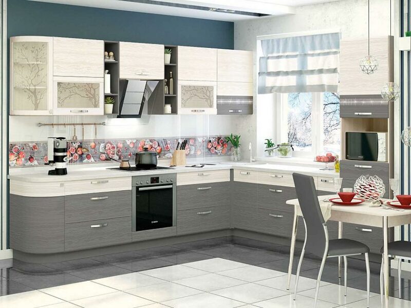Кухонный гарнитур угловой с витриной Графит 50