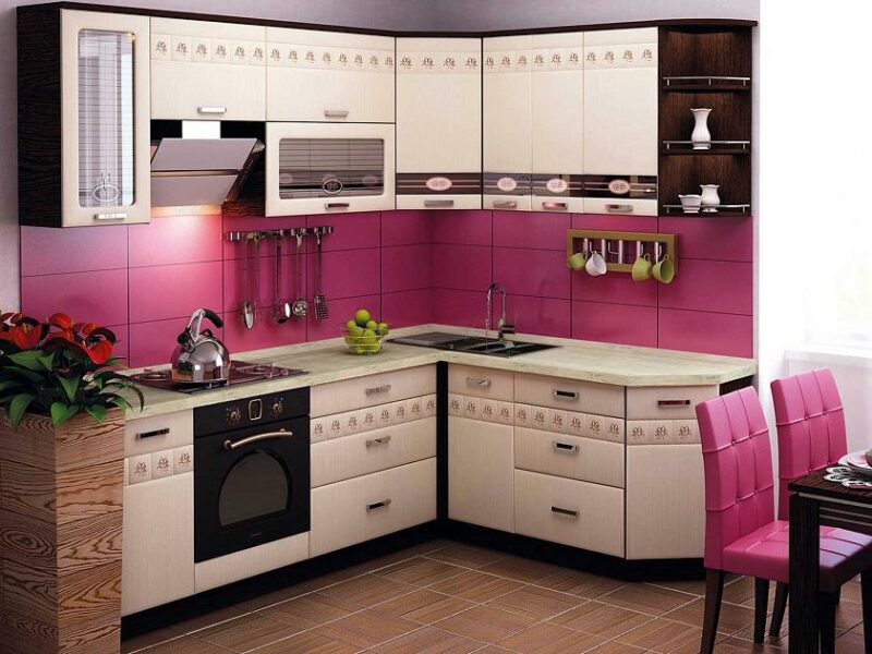 Кухонный гарнитур угловой с витриной Аврора 18