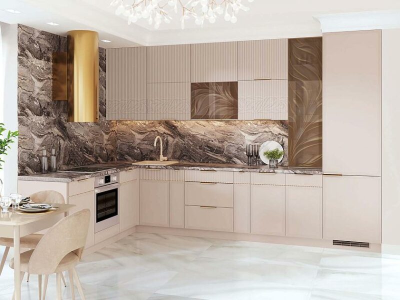 Модная фрезеровка «рейки» на фасадах в сочетании с текстурной поверхностью и изящным дизайнерским рисунком подчеркивает неповторимый дизайн коллекции.