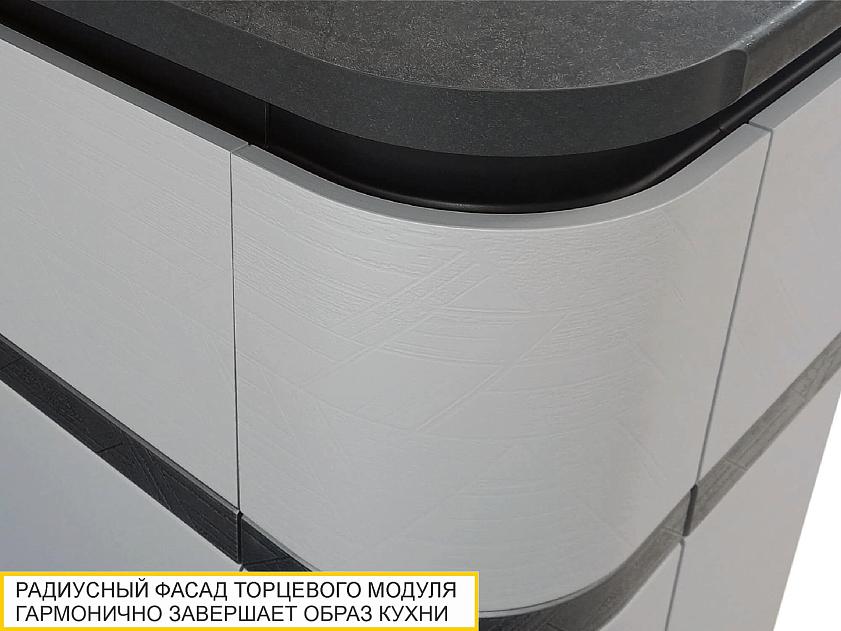 Объемное дизайнерское тиснение на фасадах подчеркивает современный стиль кухни. Рельефный рисунок придает оригинальный внешний вид.