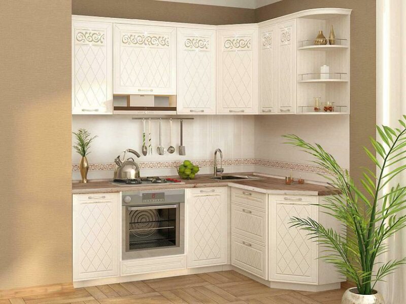 Набор мебели для кухни «Тиффани» – решение для Вашего интерьера в светлых тонах. Фасады украшены ажурной фрезеровкой, глиттерным рисунком и кристаллами премиум-класса. Европейская фурнитура обеспечивает удобную и длительную эксплуатацию. Ножки столов регулируются по высоте для удобной установки модулей и корректировки неровностей пола.
