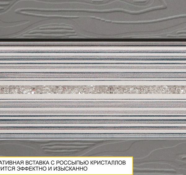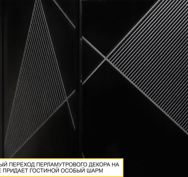 Дверцы тумбы декорированы стильной фрезеровкой с объемным рисунком, создающим 3D-эффект. Сочетание ровной бархатистой поверхности и рельефного рисунка придает безупречный элегантный образ гостиной.