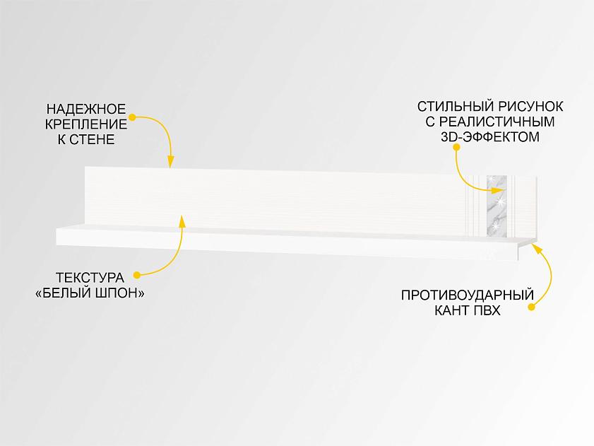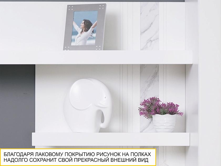 Полка декорирована стильным мерцающим рисунком под «мрамор», который добавляет оригинальности в интерьер. Благодаря лаковому покрытию декор не стирается со временем.