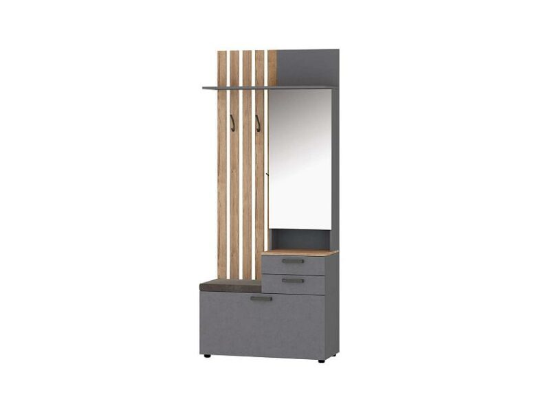 В нижней части модуля за откидной дверцей находятся полки для обуви, в верхней части — крючки для одежды и полка для головных уборов. Встроенное мягкое сиденье обеспечивает дополнительный комфорт.
