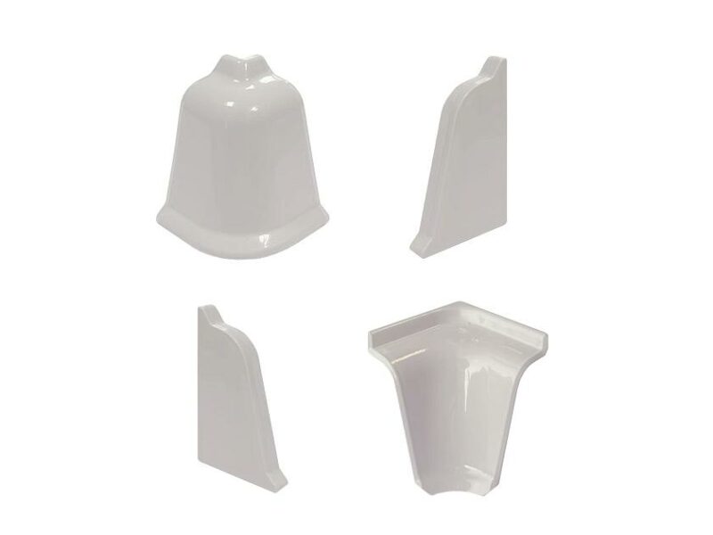 В набор входят две торцевые заглушки, одна угловая внутренняя, одна угловая внешняя и две крепежные стойки для угловых заглушек.