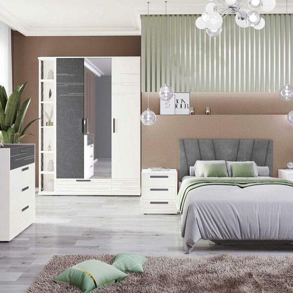 Стильное сочетание белого и серого цветов создает гармоничную и уютную атмосферу.