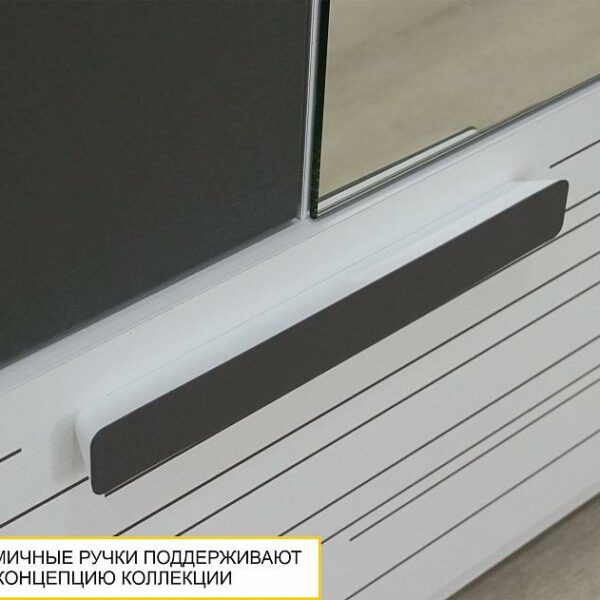 Фасад в цвете «Графит» декорирован объемным тиснением. Рельефная текстура придает дизайну мебели выразительности, создает глубину и приятные тактильные ощущения.