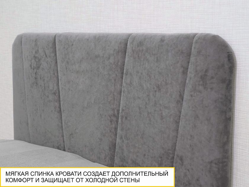 Мягкая высокая спинка кровати выполнена из прочной износостойкой ткани приятной на ощупь – софт-велюр. Материал не требует специального ухода и легко чистится.