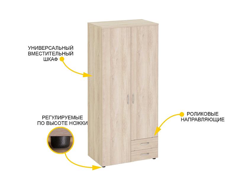 Многофункциональный шкаф оснащен штангой для хранения одежды на плечиках, полками и двумя выдвижными ящиками, что позволяет организовать продуманную систему хранения.