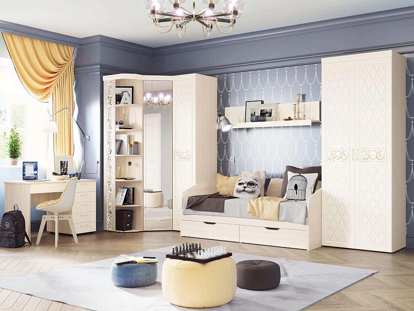 Набор мебели для детской «Тиффани 57» является частью модульной программы «Тиффани». Коллекция «Тиффани» — символ классического стиля и незабываемого шарма. Нежные светлые фасады и изысканность декора — отличительная черта коллекции. Ажурные декоративные элементы и кристаллы придают уникальность коллекции.