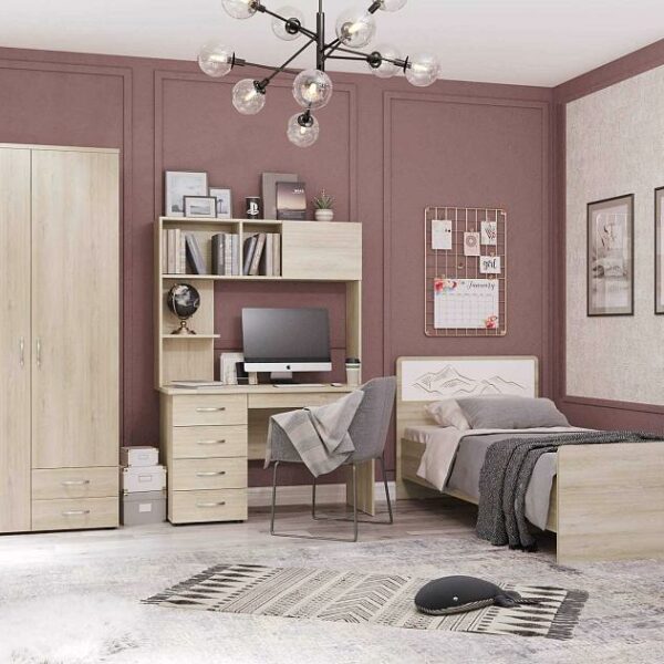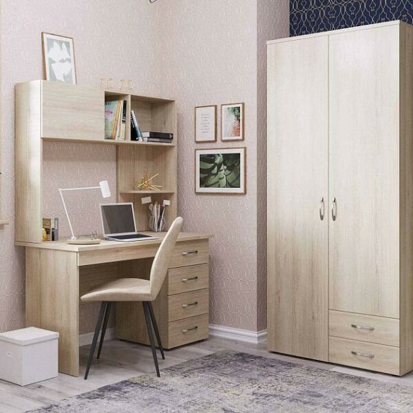 Письменный стол с выдвижными ящиками поможет создать удобное рабочее пространство, а надстройка дает возможность компактно хранить большое количество необходимых рядом с рабочей зоной предметов.