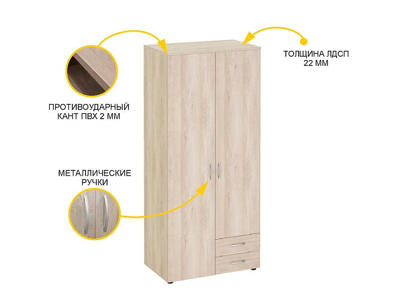 Шкаф укомплектован полками, выдвижными ящиками и штангой для удобного хранения вещей.