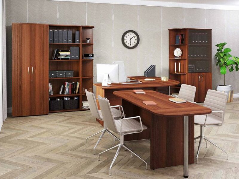 Набор мебели для персонала «Альфа 62» поможет профессионально организовать рабочее пространство в офисе. Замки на тумбах и шкафах обеспечивают безопасное хранение вещей. Демпферы обеспечивают мягкое закрывание дверей. Регулируемые по высоте ножки компенсируют возможные неровности пола. Металлические ручки подчеркивают современный дизайн модулей.