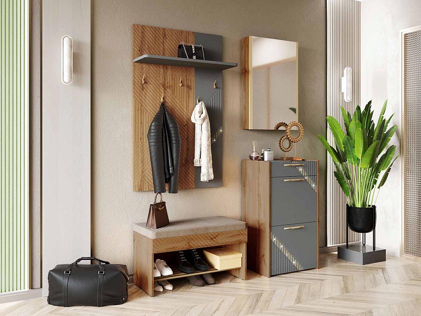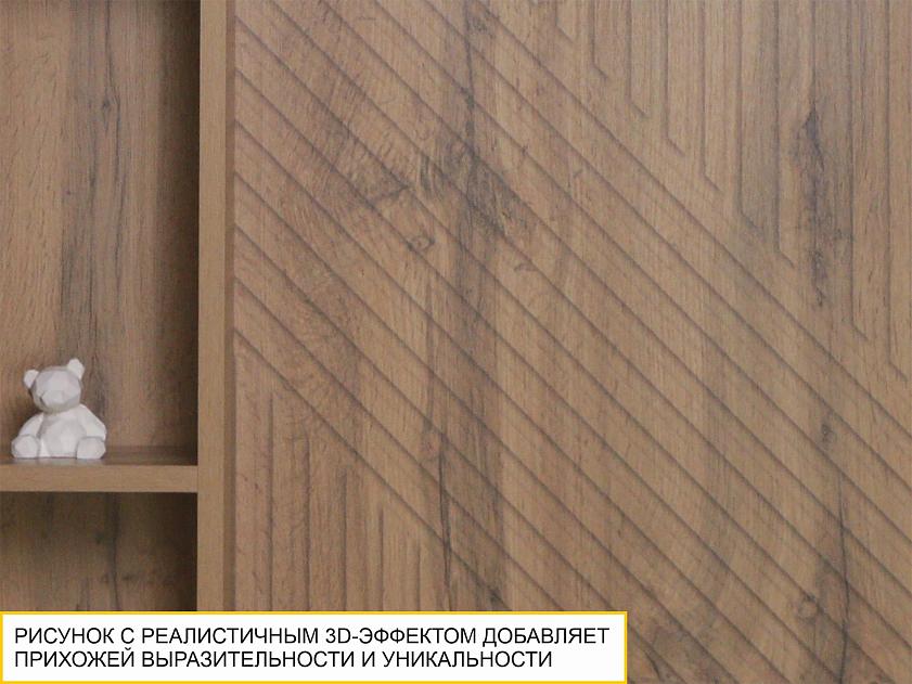 Панель с крючками и фасад обувницы декорированы рисунком с реалистичным 3D-эффектом.