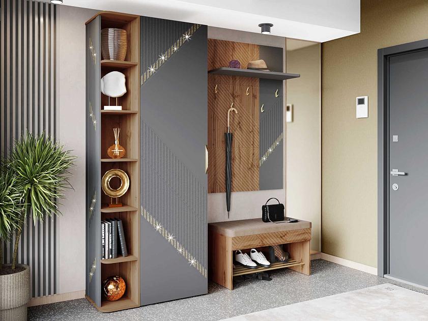 Набор мебели для прихожей «Монако 402 210» является частью модульной серии «Монако». «Монако 402» – образец элегантного стиля и утонченного вкуса. Сочетание матовой графитовой поверхности фасадов с благородной древесной текстурой «Дуб Вотан» создает особую атмосферу гармонии и комфорта.
