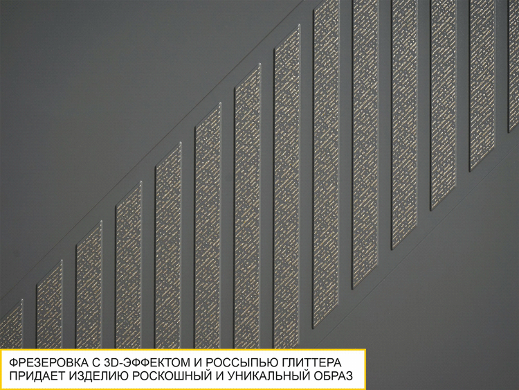 Стильная фрезеровка с авторским 3D-рисунком и россыпью глиттера подчеркивает изысканность изделия.