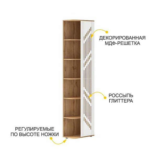 Надстройка произведена из МДФ и ЛДСП повышенной плотности. Материал устойчив к механическим и термическим воздействиям. ЛДСП выдерживает min 300 циклов на истирание, что почти в 5 раз больше, чем требуется по ГОСТу (min 65).
